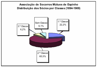 36 Em 1908, e em virtude da reformulação dos estatutos, os sócios de 3.ª classe foram integrados na 2.ª classe. A partir de 1910, o livro de registos não contempla a distribuição dos sócios por classes. No entanto, sabemos pelos estatutos que foi reposta a 3.ª classe e criada a 4.ª classe.